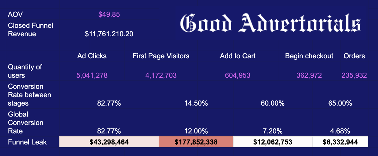Here's a real funnel run through a simple sheet I use to see where paid traffic actually leaks: